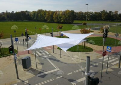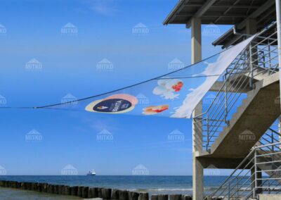Mainospurjeet ovat mielenkiintoinen vaihtoehto aurinkovarjoille, mutta niitä voidaan käyttää vain sopivissa paikoissa. Purjeet voidaan kiinnittää puihin tai rakennusten osiin haluttuun korkeuteen ja kulmaan. Niiden valtava pinta-ala peittää tapahtuma-alueen ja suojaa sitä voimakkaalta auringonvalolta ja tihkusateelta. Niihin sijoitetut grafiikat ovat näkyvissä kaukaa, ja asiakkaat tunnistavat ne varmasti omaperäisenä mainosmuotona.