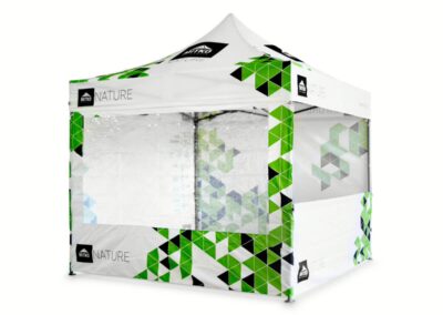 MITKO Nature -mallistoa voi tilata minkä värisillä peitteillä tahansa. Voimme painattaa niihin minkä tahansa graafisen kuvion, jolloin saat räätälöidyt teltat, aurinkovarjot, mainosbannerit tai tuolit, sillä painamme kankaalle valitsemasi värin ja ainutlaatuisen kuvion, kuten logosi.